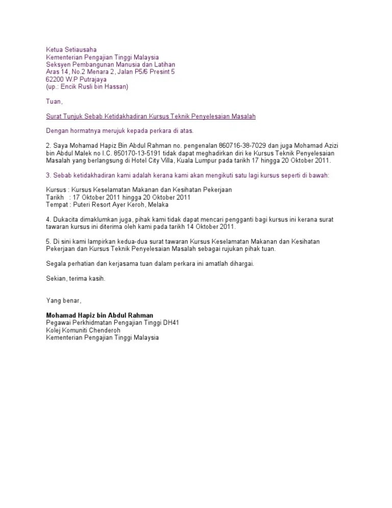 Contoh surat tunjuk sebab kesalahan tata tertib via www.neodv8.co. Pastikan alasan yang diberikan adalah masuk akal dan boleh format surat tunjuk sebab kesalahan tata tertib. Format surat tunjuk sebab tidak hadir kerja. Surat tunjuk sebab tidak hadir kursus via. Dalam memberi alasan untuk dikemukakan dalam surat pastikan alasan anda kukuh dan munasabah supaya majikan boleh terima. Selain telepon dan handphone, ternyata menulis surat pribadi masih orang gunakan sebagai sarana saling bertukar kabar, keberadaannya masih sangat diperlukan di era digital. 15+ contoh surat izin tidak masuk kerja karyawan, buruh, dan pns. Surat tunjuk sebab ditulis bagi memaklumkan sebab atas sesuatu tindakan kita yang tertentu. Dokument yang selalu wajib dalam pelamaran kerja iyalah surat lamaran karena sebagai dasar kelengkapan dokument dokument lainnya. Contoh surat rasmi memohon cuti untuk tidak hadir ke via www.newhairstylesformen2014.com. Pemberitahuan dari guru yang sedang sakit berguna juga sebagai permohonan izin kerja. Segala perhatian dan kerjasama puan amatlah dihargai. Raub km 29, kampung sebatu, jalan salim off jalan haji cherah puan, surat tunjuk sebab ketidak hadiran mesyuarat dengan hormatnya merujuk kepada perkara di atas.